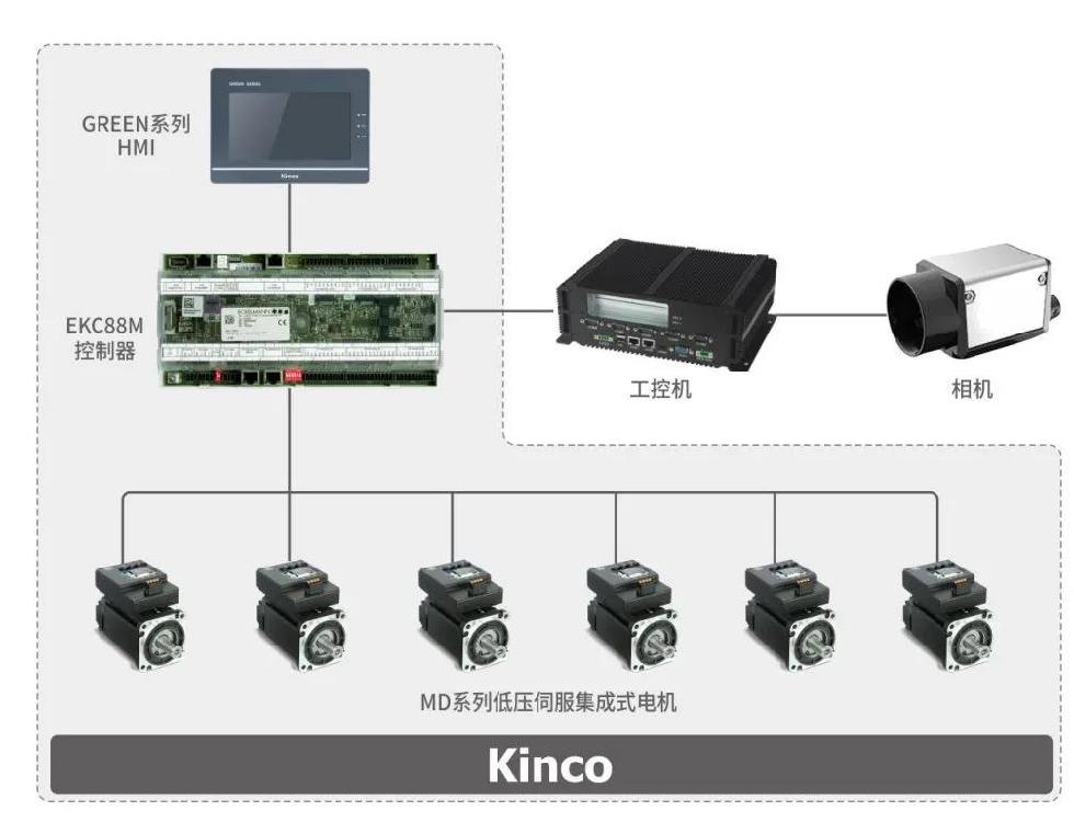 該方案基于模塊化理念設(shè)計,主要由步科二合一驅(qū)動器和一體化伺服電機等組成,既方便了生產(chǎn)組裝、后期維修,又節(jié)省了電機與驅(qū)動器間的連接線,極大降低斷線等潛在風(fēng)險。