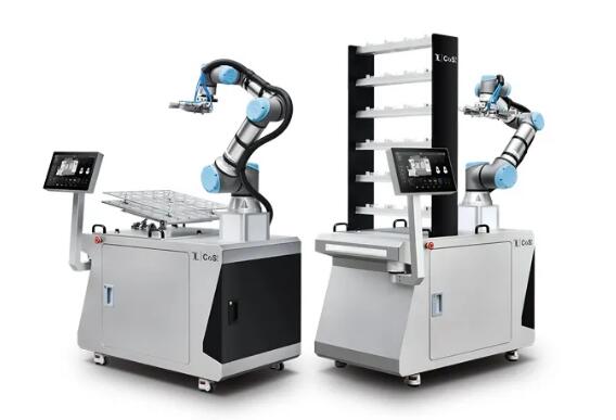 為此,廣州里工在2018年開始設(shè)計(jì)一種基于協(xié)作機(jī)器人的方案,將優(yōu)傲機(jī)器人(Universal Robots,以下簡(jiǎn)稱為UR)的協(xié)作機(jī)器人集成到一個(gè)智能上下料平臺(tái)——CoSi高斯無人值守協(xié)作機(jī)器人(以下簡(jiǎn)稱:高斯),不僅降低了人工成本的投入,效率及良品率也有所提高,還全面提升了工位的安全性,達(dá)到了解放人手,降本提效的效果。