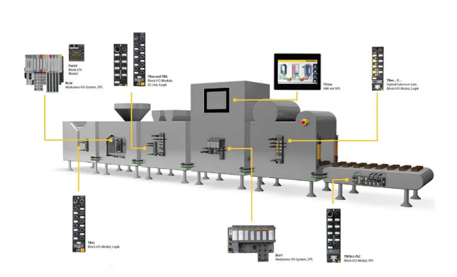 在中央控制柜內(nèi)通過點(diǎn)對點(diǎn)接線無法實現(xiàn)一致的模塊化設(shè)計。在這類中央架構(gòu)中很難更換模塊或擴(kuò)展機(jī)器。機(jī)器模塊要求采用自主結(jié)構(gòu)。這可在帶IP20組件的模塊上的小型現(xiàn)場控制盒中實現(xiàn)。