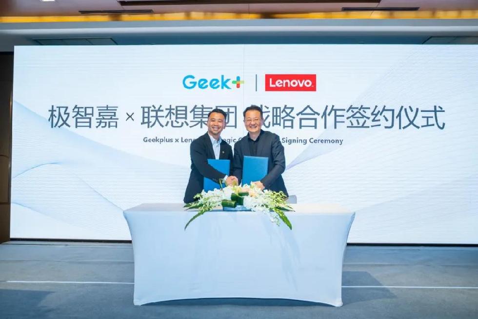▲聯(lián)想集團(tuán)副總裁、中國服務(wù)業(yè)務(wù)總經(jīng)理戴煒先生與極智嘉中國區(qū)高級(jí)副總裁劉征先生簽署戰(zhàn)略合作協(xié)議