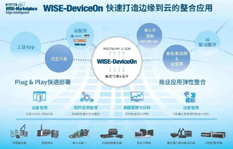 同時(shí),WISE-DeviceOn兼容所有研華的硬件系統(tǒng),并可在主流的平臺(tái)如:WISE-PaaS公有云/私有云、Microsoft Azure、VM on-premise和Kubernetes上工作。研華通過功能整合,融合了硬件與中間軟件的產(chǎn)品功能,不僅能協(xié)助客戶實(shí)現(xiàn)快速開發(fā)和產(chǎn)品上市,同時(shí)也提高自身企業(yè)的隱形價(jià)值,來擁抱新機(jī)遇下的“第二個(gè)春天”。