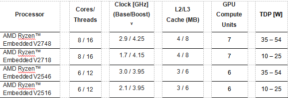 相比上一代產(chǎn)品v,這些模塊擁有雙倍的每瓦計算性能和核心數(shù)量。得益于對稱多進程處理功能,它們還具有多達16線程的并行處理能力。這些模塊采用4MB L2緩存、8MB L3緩存和最大32GB的高能效快速雙通道64位DDR4內(nèi)存,最高可達3200 MT/s,并支持ECC,以實現(xiàn)最高的數(shù)據(jù)安全性。擁有7個計算單元的AMD Radeon?集成顯卡持續(xù)支持需要高性能圖形計算的應(yīng)用。