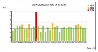 據(jù)福祿克介紹,此前因測試儀內(nèi)阻測試的重復(fù)精度不高,南方某通訊公司的負責(zé)人員無法準確評估電池狀態(tài),前后多次測得內(nèi)阻數(shù)值不一致,無法做可靠評估。而工程師選用BT521對32節(jié)額定容量為100AH的電池進行了測量,內(nèi)阻測試的結(jié)果和不久前通過放電法測得的電池容量結(jié)果基本一致。