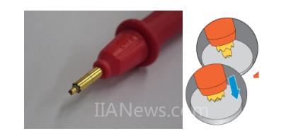 不僅如此,表筆還采用了“彈簧表針”的設(shè)計方案。只有內(nèi)外圈同時有效接觸電池極端時,才可進行測試讀數(shù)。同軸彈簧式設(shè)計,最大限度減少接觸阻抗影響。