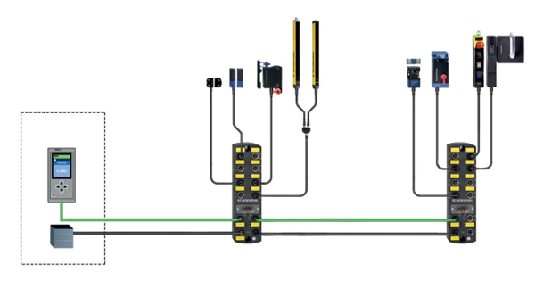 具有無源配電模塊(PDM)或無源現(xiàn)場總線盒(PFB)的安裝解決方案,可用于專用電子安全開關(guān)設(shè)備的應(yīng)用。每個模塊最多可與四個不同的電子安全開關(guān)設(shè)備混合串聯(lián)。多個模塊可以連接到更大的系統(tǒng)。該解決方案適用于更復(fù)雜的機器和系統(tǒng),由于其安裝簡單,安全的操作,以及較低的接線要求,十分吸引人。