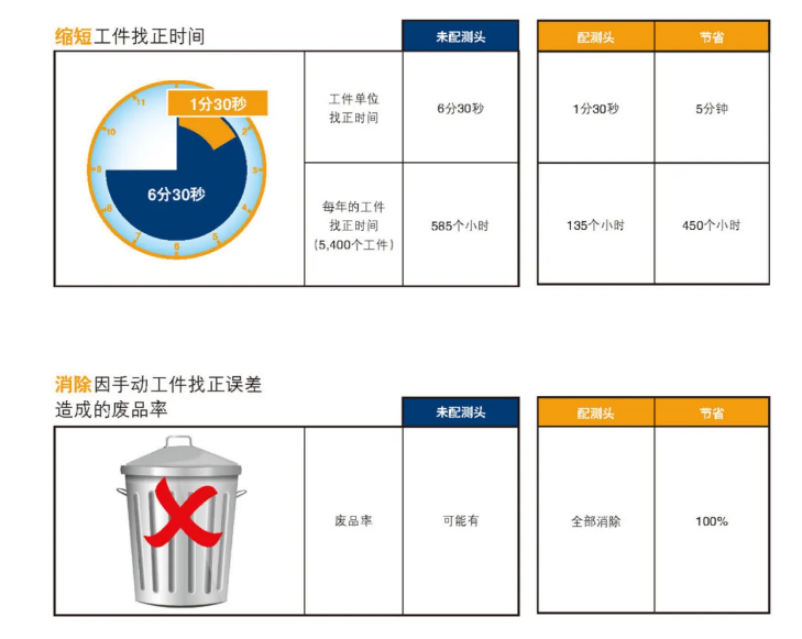 以下圖表提供的行業(yè)應(yīng)用典型示例顯示了測頭使用前后的不同情況。