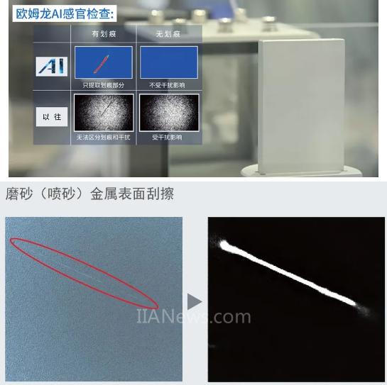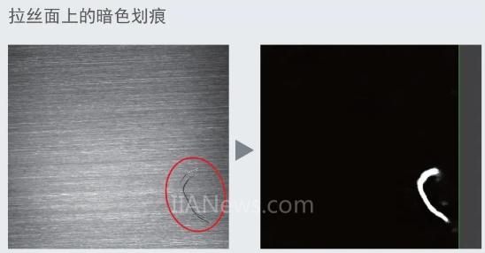 AI感官檢查,能夠?qū)崿F(xiàn)熟練技術(shù)人員的經(jīng)驗(yàn)判斷,檢測(cè)到不確定背景中的缺陷,例如拉絲面上的劃痕,磨砂(噴砂)金屬表面的刮擦,不通過顏色、亮度來定義,而是利用AI來抽取劃痕本身。使得穩(wěn)定檢出變?yōu)榭赡堋?/FONT>