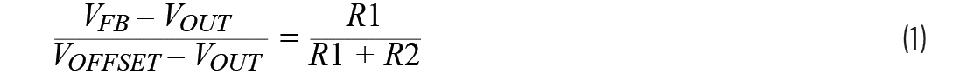 公式1顯示了IC的反饋電壓(VFB)、所需的輸出電壓(VOUT)、外加正極直流偏置電壓(VOFFSET),以及電阻分壓器的電阻R1和R2之間關(guān)系。