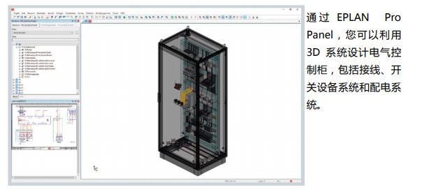 Eplan Pro Panel幫助了設計人員輕松規(guī)劃控制柜和動力柜的整體規(guī)劃,實現(xiàn)三維布局設計、布線優(yōu)化和門板開孔設計,提高設計效能,從設計源頭降低項目成本。項目竣工后生成完整的“竣工”產品文檔,高效管理設計成果,縮減產品項目上市時間周期。