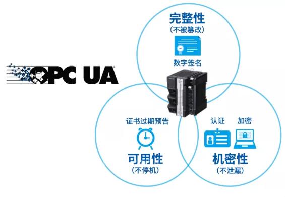 為了實(shí)現(xiàn)IoT化,需要在生產(chǎn)現(xiàn)場(chǎng)的FA系統(tǒng)與上位IT系統(tǒng)進(jìn)行連接、通過遠(yuǎn)程訪問進(jìn)行維護(hù)、利用互聯(lián)網(wǎng)等方面確保安全。OPC UA采用互聯(lián)網(wǎng)標(biāo)準(zhǔn)使用的安全技術(shù),滿足了完整性、機(jī)密性、可用性等三大安全需求。實(shí)現(xiàn)了使用數(shù)字簽名的數(shù)據(jù)確認(rèn)和嚴(yán)密的消息加密,使FA與IT安全互連。