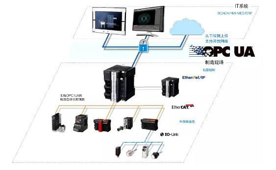 歐姆龍也努力推動(dòng)著連接FA與IT的工業(yè)IoT(IIoT)標(biāo)準(zhǔn)的普及。歐姆龍為NX102-□□□□/NJ501-1□00標(biāo)準(zhǔn)配備了OPC UA服務(wù)器功能。