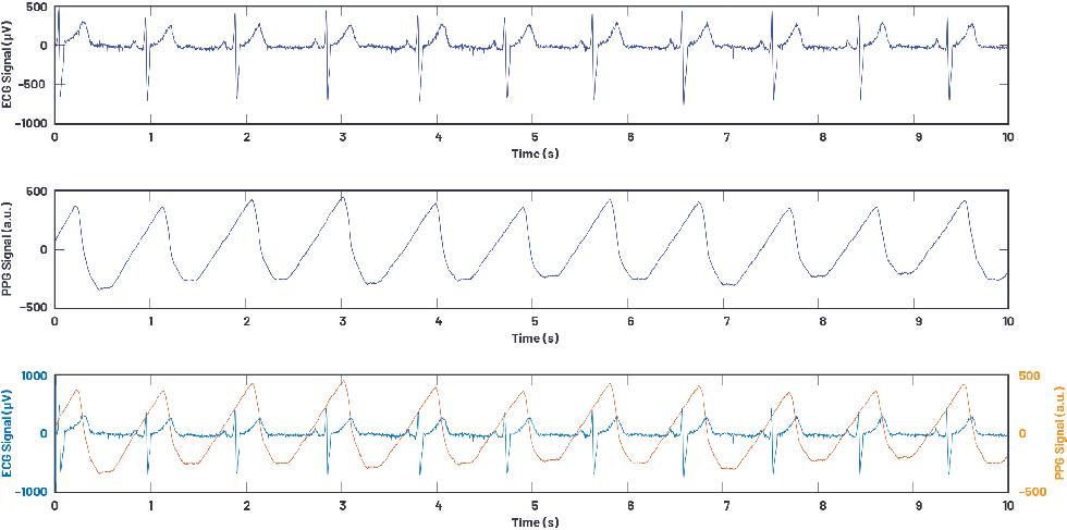 圖2.同時進(jìn)行ECG和PPG測量以估測血壓