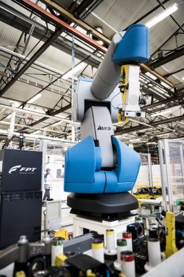在這座工廠中,負(fù)責(zé)三組組裝重型車輛設(shè)備車橋用主軸的部門,采用了 AURA (先進(jìn)用途機(jī)械臂)來進(jìn)行生產(chǎn):這款機(jī)械臂由 Comau 設(shè)計建造,專門用于 HuManS (以人為中心的制造系統(tǒng))項目,于皮埃蒙特大區(qū)向市場推出,專用于構(gòu)建智能工廠平臺,這一平臺也正是菲亞特動力科技、Comau 和另外 17 家同行業(yè)公司共同合作所帶來的成果。這一項目以人作為生產(chǎn)系統(tǒng)的中心,四周環(huán)繞各種機(jī)械設(shè)備,在制造過程中提供各種協(xié)助,共用同一空間,同時又能夠確保絕對安全。