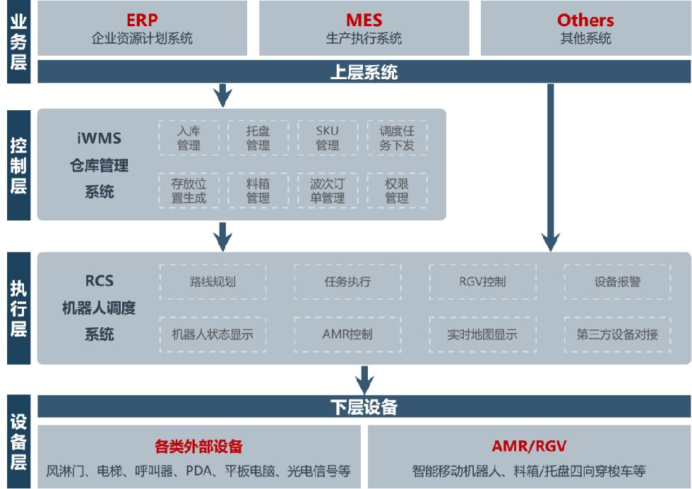 RCS-2000可與WMS、MES、ERP等各種企業(yè)上下層系統(tǒng)無縫對(duì)接,也能夠與風(fēng)淋門、分播墻、PLC、電梯、門控、呼叫器、PDA、平板電腦、光電信號(hào)等各類外部設(shè)備對(duì)接,完成資源的協(xié)同管理和統(tǒng)一調(diào)度,且可滿足用戶個(gè)性化的業(yè)務(wù)場(chǎng)景和作業(yè)流程規(guī)則定制。