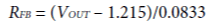 配置為單端初級(jí)導(dǎo)體(SEPIC)時(shí),LTM8045的輸出電壓由VOUT+和FB引腳之間的反饋電阻(RFB)的值設(shè)置,該電阻值通過公式1計(jì)算。