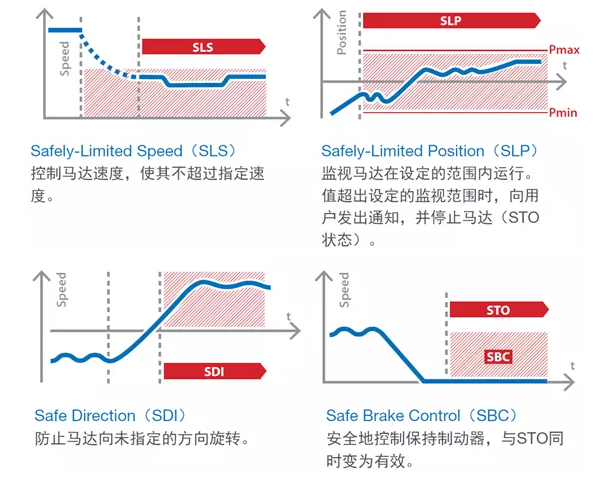 通過FSoE實現(xiàn)STO、SS1、SS2、SOS、SLS、SLP、SDI、SBC(PLe SIL3)