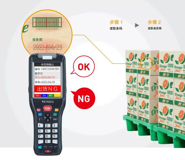 在商品出庫時讀取保質(zhì)期的日期。預(yù)先設(shè)定好各商品或依照客戶設(shè)定出貨 NG 日期,并與讀取數(shù)據(jù)進行比較,即可防止出貨失誤。