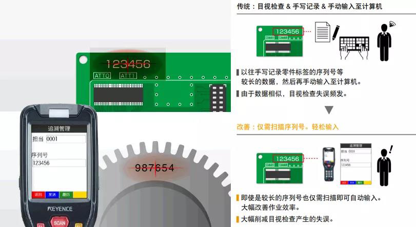 讀取OCR字符很多人認為是視覺相機的應(yīng)用,但是,目前基恩士手持終端也實現(xiàn)了OCR 字符識別的功能,并且?guī)椭烁鱾€行業(yè)生產(chǎn)&物流實現(xiàn)了效率提升。