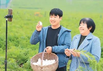 在甘肅省隴南市成縣陳院鎮(zhèn)白馬寺村,網(wǎng)紅主播正在直播帶貨拓展農(nóng)產(chǎn)品線上銷售。來源:人民圖片