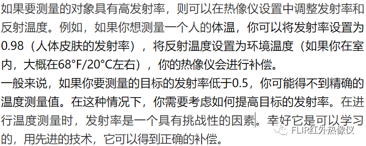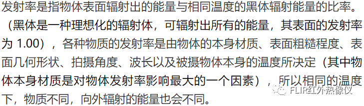眾所周知,發(fā)射率是影響紅外檢測(cè)精度的重要參數(shù)之一,因各目標(biāo)表面性質(zhì)不盡相同,故發(fā)射率會(huì)有很大差別;若不能準(zhǔn)確設(shè)置發(fā)射率,則會(huì)造成測(cè)量誤差,今天就來(lái)給大家說(shuō)下發(fā)射率是如何影響熱成像的?