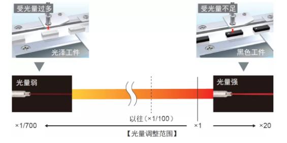 具有高動(dòng)態(tài)范圍(E3X-HD的7倍),從黑色物體到有光澤的物體均可穩(wěn)定檢測。即使背景為光澤面,通過充分降低光量,也不會(huì)發(fā)生光量飽和。