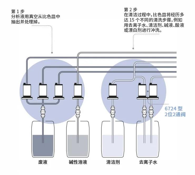 體外診斷分析|Bürkert 2 位 2 通閥可高效安全地清潔比色皿