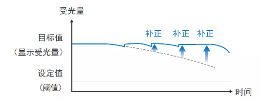 ATC功能根據受光量的變化,以一定的比率自動補正閾值的功能。在投光量變化、灰塵或臟污等外部因素導致無法穩(wěn)定檢測時非常有用。
