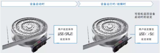 通過用戶設定保存功能,預先保存設備出廠時與現場啟動時的設定(包括Tuning信息在內的所有信息)。如果誤操作,只需按照指示執(zhí)行用戶復位操作,即可返回到保存的設定狀態(tài),從而避免現場再調整的麻煩。
