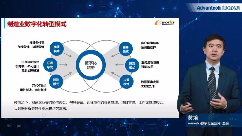 研華物聯(lián)網(wǎng)伙伴峰會(huì)中的大咖對談、思想碰撞仍在繼續(xù)。前幾天,我們邀請了北京聯(lián)訊動(dòng)力咨詢有限公司總經(jīng)理林雪萍先生與我們分享工業(yè)數(shù)字化轉(zhuǎn)型及企業(yè)創(chuàng)新之道,今天又請到e-works數(shù)字化企業(yè)網(wǎng)總編黃培先生,深度剖析制造業(yè)數(shù)字化轉(zhuǎn)型觀察與推進(jìn)策略。