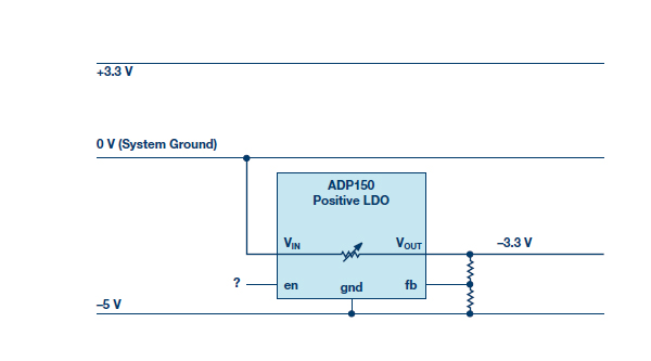 在這種情況下使用正線性穩(wěn)壓器的第二個(gè)缺點(diǎn)是線性穩(wěn)壓器設(shè)備的I/O引腳(例如使能引腳)將以–5V為參考。如果需要監(jiān)控不同電壓的上電序列,則可能需要電平轉(zhuǎn)換。