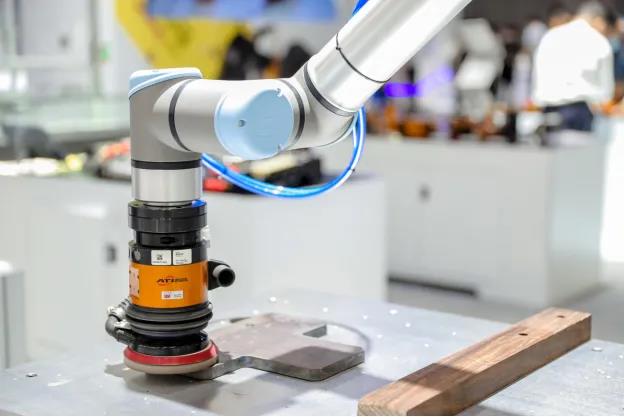 在協(xié)作機器人蓬勃發(fā)展的今天,越來越多的應用被開發(fā)應用,我們最新產(chǎn)品AOV-10也新晉為UR+的新成員,此次展會,我們繼續(xù)上海工博會,展示出協(xié)作機器人使用ATI最新偏心浮動振動砂光機進行曲面打磨。
