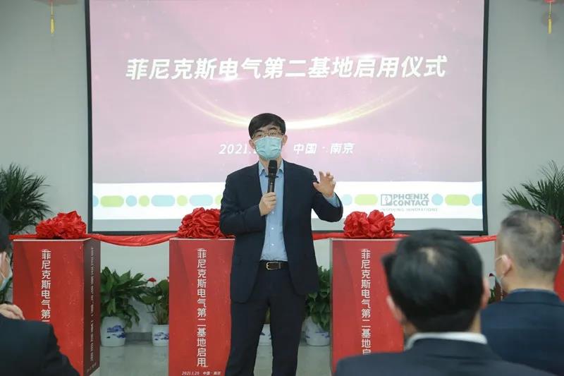 領導致辭啟用儀式上,菲尼克斯電氣中國公司總裁顧建黨、副總裁陳雷致辭。