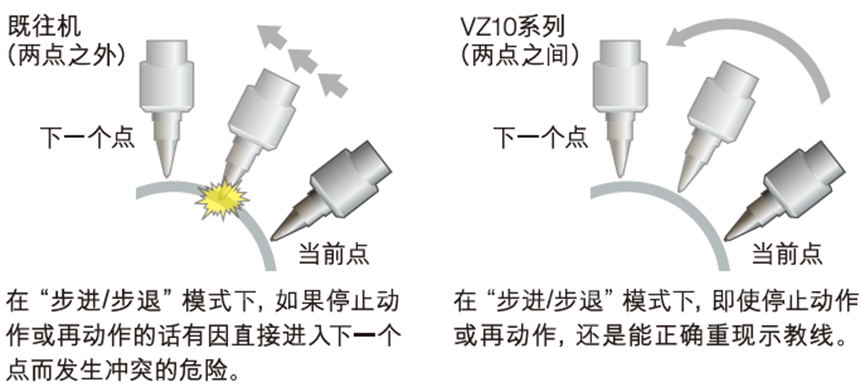 實現(xiàn)兩點之間控制時,在“步進/步退”模式下,能避免機頭與加工工件發(fā)生沖突。(圓弧插補時)