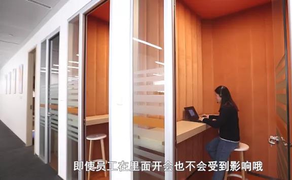 單人mini會議室采用了吸音效果處理,員工在其內(nèi)部也能專心與屏幕的另一方進(jìn)行溝通,免受外界打擾。