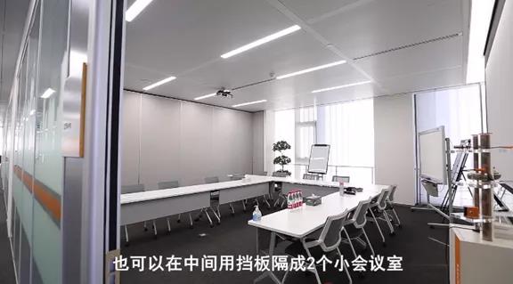 ifm最大的會議室可以容納至少40人同時參會,主要用于員工培訓(xùn)、work shop、內(nèi)部會議等。平常會議較多的時候也可以將其在中間用隔板分成2個小會議室,充分利用空間。
