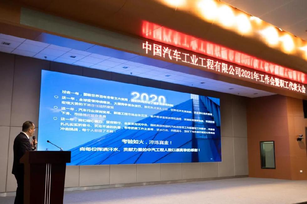 2月1日,中汽工程2021年工作會暨職工代表大會在天津總部召開。中汽工程領(lǐng)導班子成員、全體中層干部、黨支部書記、分工會主席、公司團委委員、團支部書記、職工代表以及獲表彰的先進集體和先進個人共計210余人在主會場參會,各二級機構(gòu)設(shè)分會場同步視頻參會。國機汽車黨委書記、董事長陳有權(quán),國機汽車財務(wù)總監(jiān)、董事會秘書趙建國蒞臨參會,會議由中汽工程紀委書記、工會主席李獻偉主持。