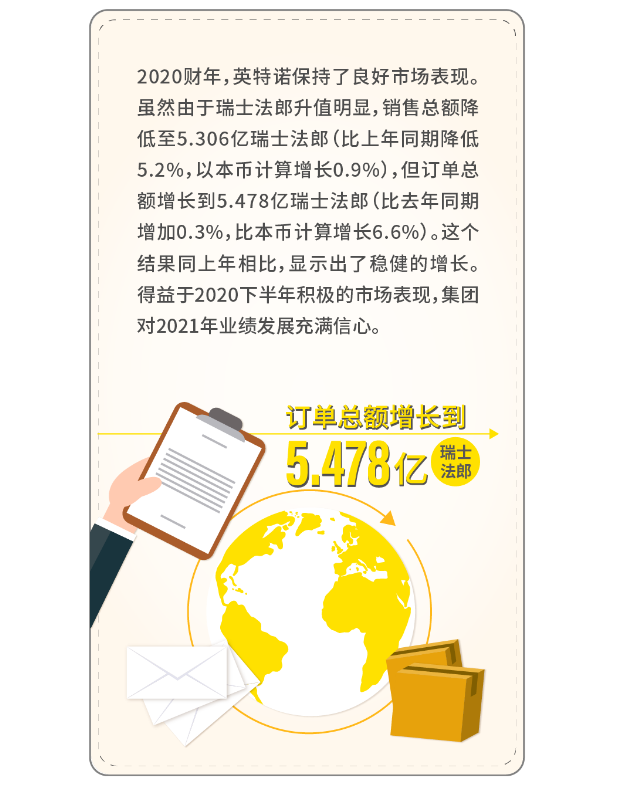 2020年合并訂單額為5.478億瑞士法郎(比去年同期增長0.3%),以本幣計算比去年同期增長6.6%。下半年業(yè)務(wù)增長尤為明顯。