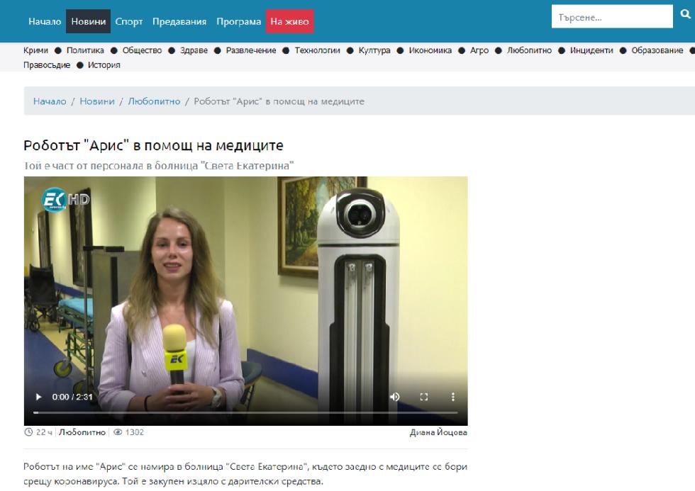 近日,保加利亞最高收視率電視臺(tái)bTV對(duì)優(yōu)艾智合防疫機(jī)器人進(jìn)行了特別報(bào)道。