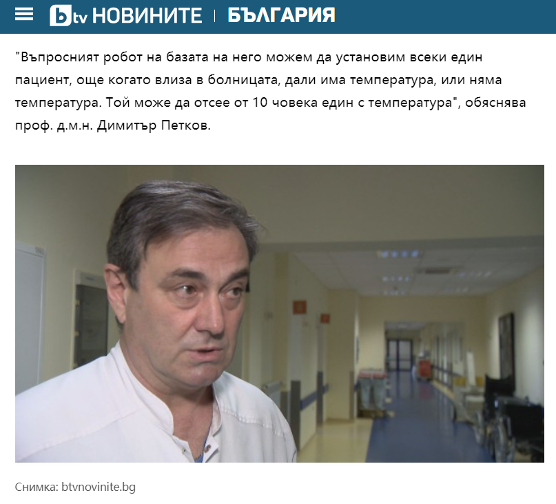 “它是保加利亞第一個(gè)具有如此眾多功能的物種?!钡厦姿?佩特科夫(Dimitar Petkov)表示。智能防疫機(jī)器人不僅適用于商場(chǎng)、辦公室、寫字樓,而且是所有希望免受現(xiàn)代病毒(包括COVID-19)感染的醫(yī)院、學(xué)校甚至私人住宅的新“安全趨勢(shì)”。研究表明,未來幾年內(nèi),所有公共場(chǎng)所都絕對(duì)需要這種技術(shù)。在全球范圍內(nèi),該機(jī)器人已經(jīng)在中國、德國、韓國、新加坡、加拿大、泰國、澳大利亞等國家的數(shù)十家醫(yī)院、機(jī)場(chǎng)和其他建筑物中使用。
