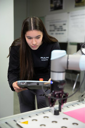 ▲St?dtische Berufsschule für Metall設計機電一體化職業(yè)學校位于德國慕尼黑,學生們現(xiàn)已運用優(yōu)傲協(xié)作型機器人進行培訓,為汽車業(yè)自動化過程做準備。