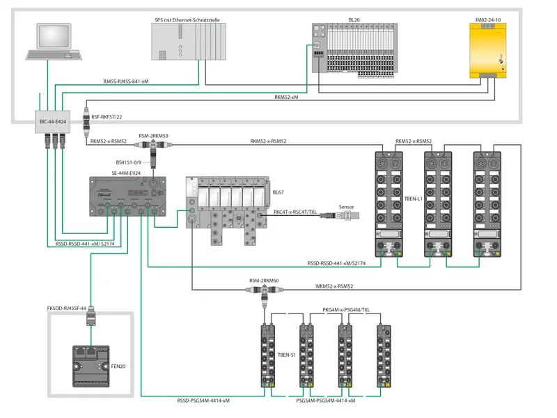 系統(tǒng)概覽 (上圖) 幫助您了解網(wǎng)絡(luò)架構(gòu)和各類I/O及網(wǎng)絡(luò)組件。系統(tǒng)概述提供了網(wǎng)絡(luò)體系結(jié)構(gòu)和不同的I/O和網(wǎng)絡(luò)組件的初步印象。連接可以通過(guò)線性、星形和樹形結(jié)構(gòu)實(shí)現(xiàn),也可以通過(guò)冗余環(huán)拓?fù)?MRP)實(shí)現(xiàn)。