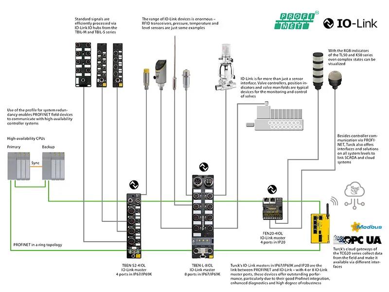 PROFINET系統(tǒng)冗余擴(kuò)展現(xiàn)在使工業(yè)以太網(wǎng)的優(yōu)點(diǎn)也可以用于流程工業(yè)。Turck更進(jìn)一步,在高可用性系統(tǒng)中集成了IO-Link。并顯示了系統(tǒng)架構(gòu)可能的樣子沒(méi)有什么能阻擋智能現(xiàn)場(chǎng)設(shè)備的端到端數(shù)字連接,比如位置指示器、閥塊、傳感器或I/O集線器。在安裝時(shí)間方面,IO-Link是高效和直接的,因?yàn)閿?shù)據(jù)和電源是通過(guò)一根未屏蔽的標(biāo)準(zhǔn)電纜傳輸?shù)?。下文中,我們講PROFINET有何優(yōu)勢(shì)。