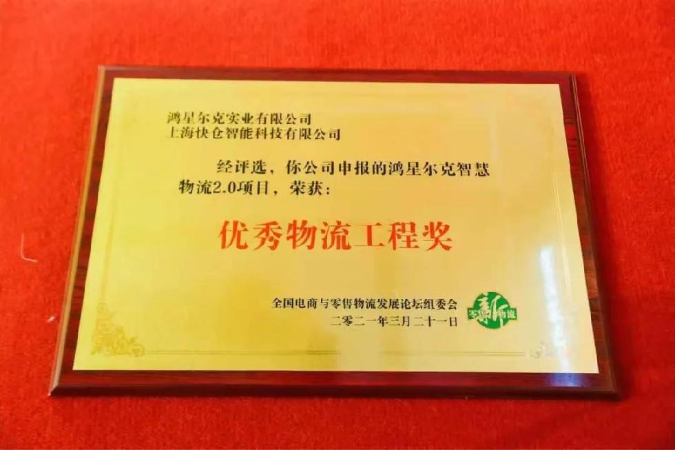 2021年3月31日-4月1日,由《物流技術(shù)與應(yīng)用雜志》主辦的“2021全國電商與零售物流發(fā)展論壇暨第十屆快速消費(fèi)品供應(yīng)鏈與物流高峰會”在無錫召開。在智能制造環(huán)境下,打造智慧、高效的供應(yīng)鏈,是企業(yè)在市場競爭中獲得優(yōu)勢的關(guān)鍵??靷}智能助力打造的鴻星爾克智慧物流2.0項目得到了主辦方及行業(yè)用戶的一致認(rèn)可和充分贊譽(yù),榮獲“優(yōu)秀物流工程獎”。