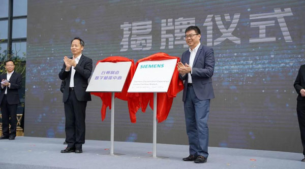 臺州市委書記李躍旗同西門子(中國)執(zhí)行副總裁王海濱共同揭牌