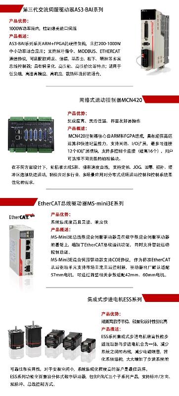 本次展會(huì)將重點(diǎn)展出運(yùn)動(dòng)控制器/卡、總線驅(qū)動(dòng)器、伺服驅(qū)動(dòng)器、步進(jìn)驅(qū)動(dòng)器等品類新品、及升級(jí)版產(chǎn)品。