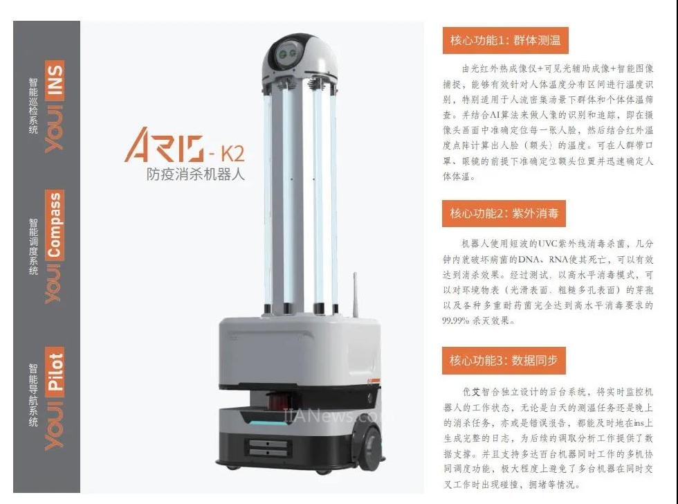 細(xì)菌和病毒的傳播途徑多種多樣,針對(duì)環(huán)境中的殘留病毒,相比于傳統(tǒng)化學(xué)消毒方式,紫外線消殺具有使用成本低、效率高、效果穩(wěn)定、消毒后無殘留、不改變環(huán)境酸堿度等明顯優(yōu)勢。采用機(jī)器人代替人進(jìn)行公共防疫測溫工作,避免與潛在患者近距離接觸,能十分有效地保護(hù)防疫工作者。