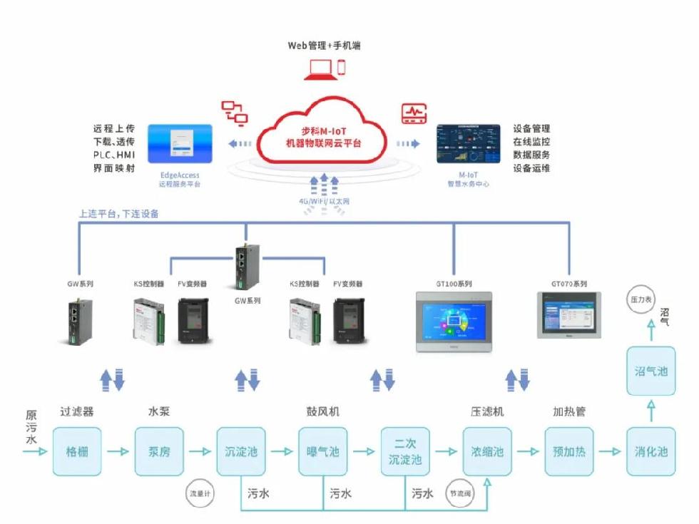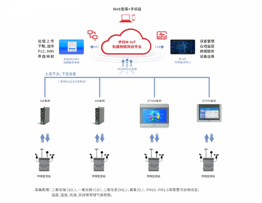該方案主要由GT系列物聯(lián)型HMI或GW系列物聯(lián)網(wǎng)關(guān)等硬件,以及步科機(jī)器物聯(lián)網(wǎng)云平臺(tái)組成,可助力快速提升設(shè)備智能化管理。