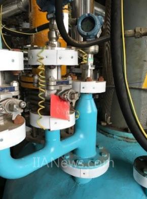 5408提供采用PTFE材質(zhì)的過程密封天線可以很好的耐腐蝕,特別適用于腐蝕環(huán)境。由于PTFE材料最高耐溫只能到200°C,而客戶的過程溫度最高可達(dá)210°C,所以艾默生同時(shí)根據(jù)客戶現(xiàn)場(chǎng)的情況,制作了一套特殊的降溫裝置,有效幫助客戶解決了此處的測(cè)量難點(diǎn)問題,使雷達(dá)完全無憂工作。