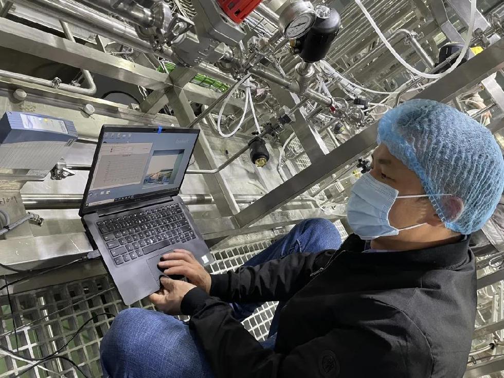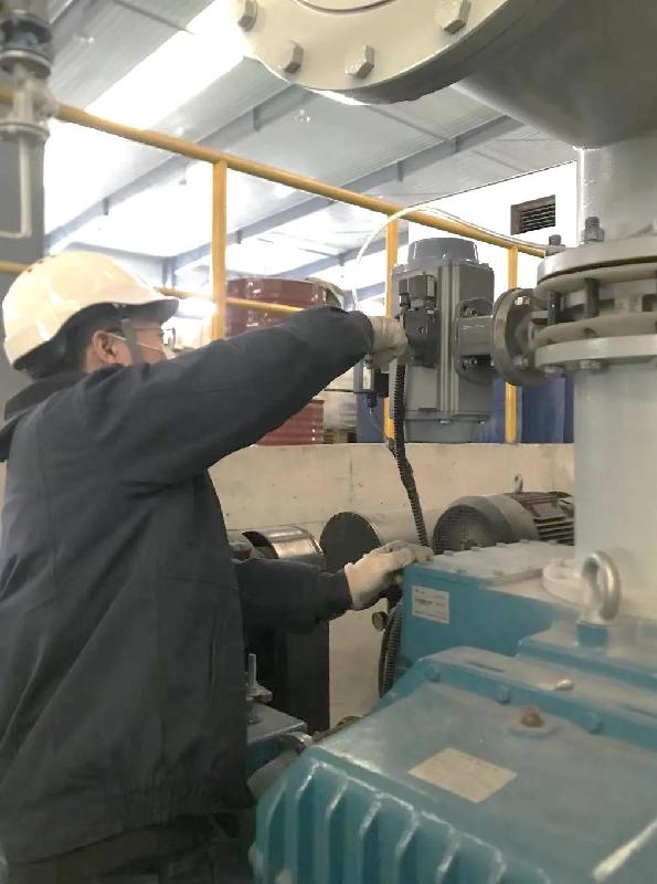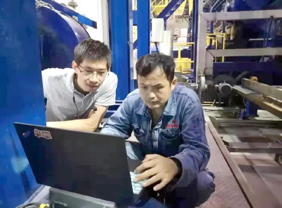 ▲ 寶帝公司售后服務工程師曾偉坤在現(xiàn)場為客戶調試設備