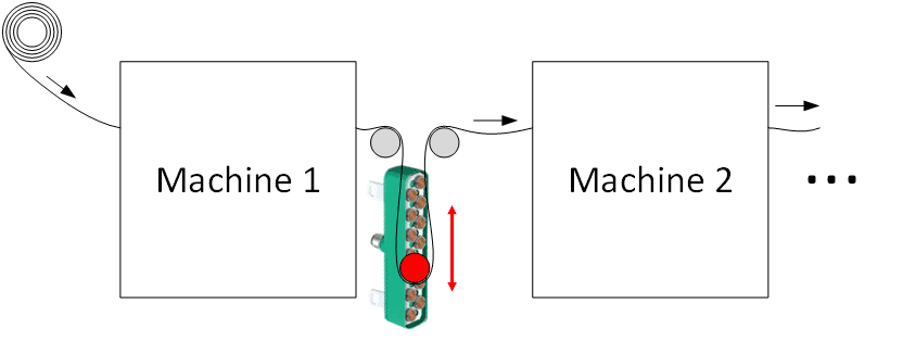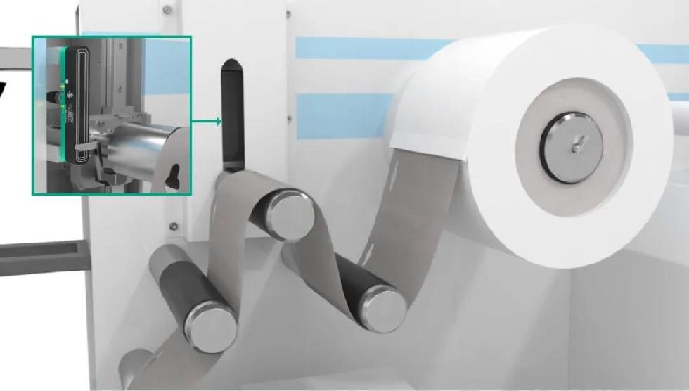張力控制系統(tǒng)在鋰電生產(chǎn)設(shè)備中起著尤其重要的作用,如張力過小,電池薄膜會(huì)產(chǎn)生褶皺;如張力過大,會(huì)造成電池薄膜的尺寸變形),因此,一個(gè)良好的張力控制系統(tǒng),可以預(yù)防電池薄膜的變形,在生產(chǎn)過程中實(shí)現(xiàn)電池薄膜的穩(wěn)定傳送,保證收、放卷質(zhì)量,從而使得最終電芯的質(zhì)量可靠。倍加福PMI位置檢測傳感器,憑借其非接觸、高精度等性能優(yōu)勢,非常適用于此類浮動(dòng)輥式張力控制系統(tǒng)中的應(yīng)用。